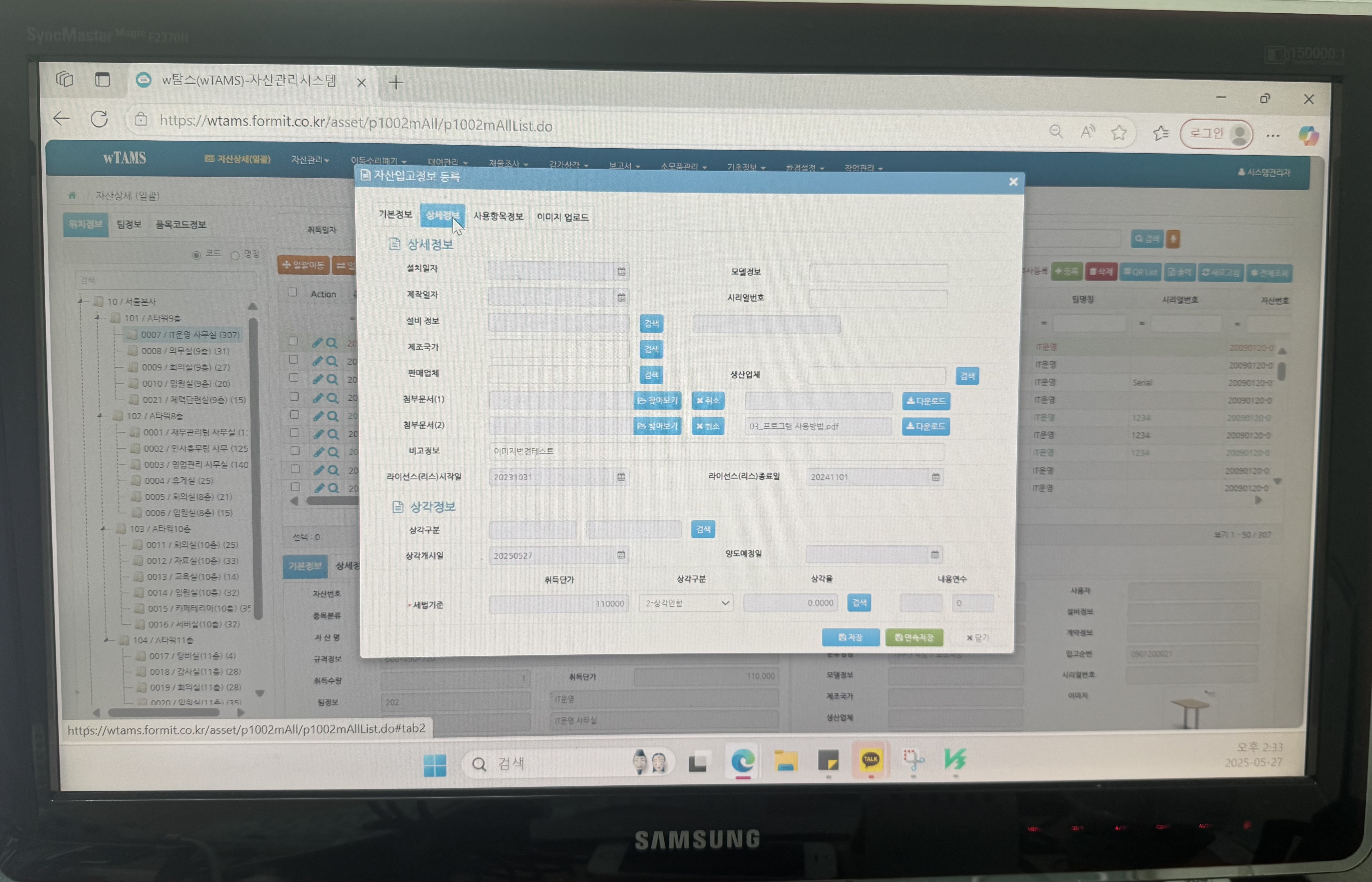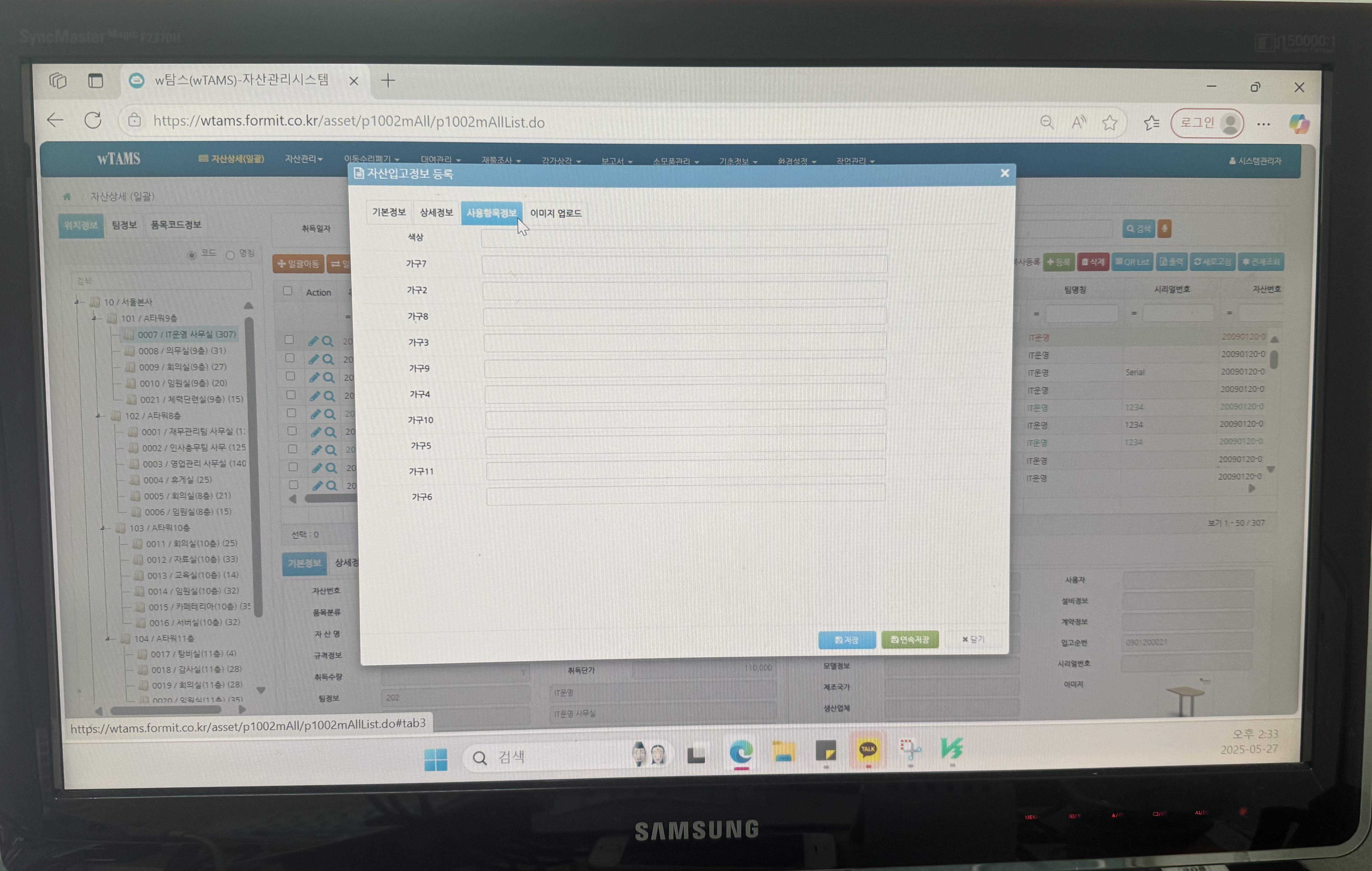 탐스(TAMS)의 자산 등록화면은 다음과 같은 고급 기능을 제공합니다: